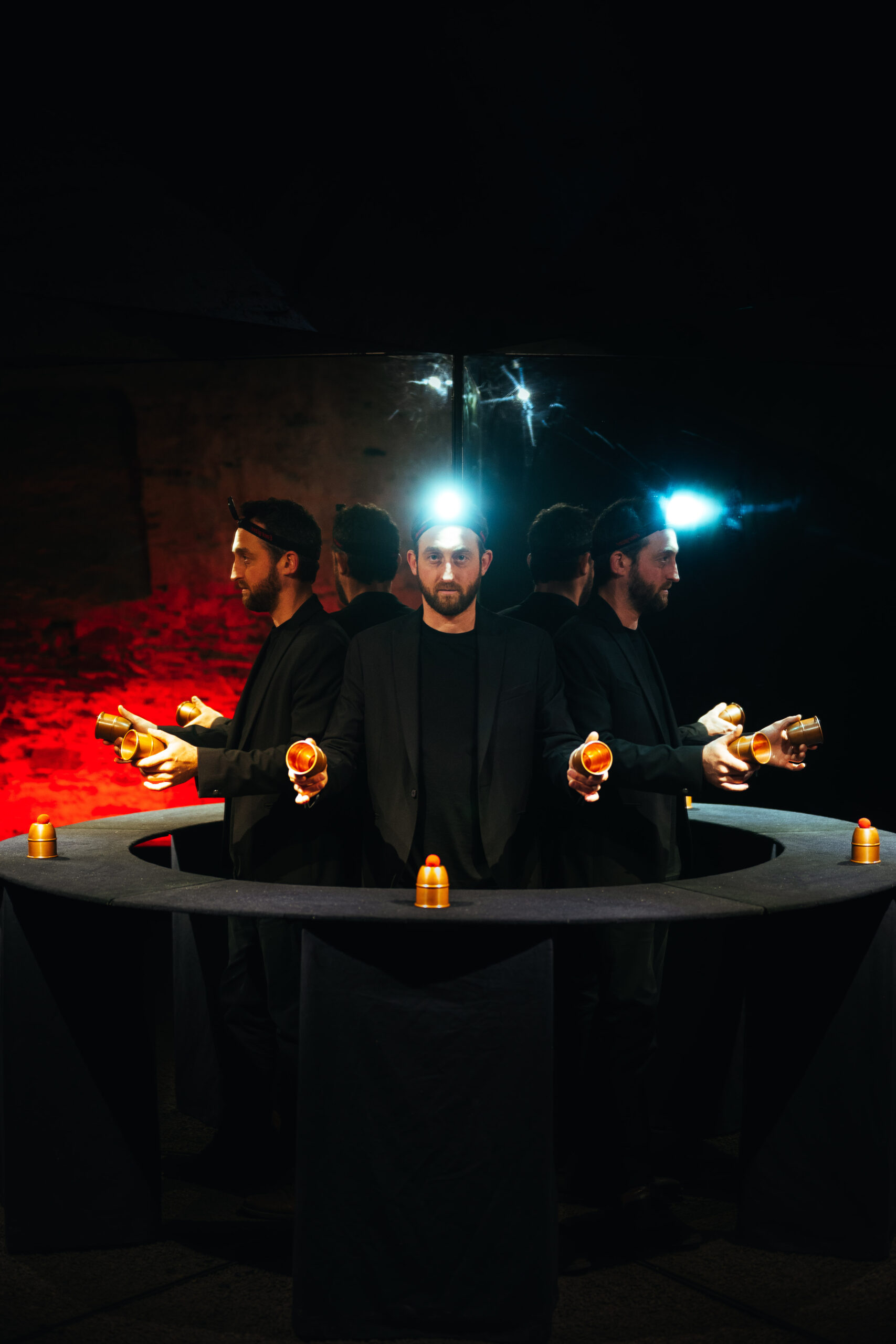 Chaque installation, qu’elle soit monumentale ou minimaliste, met en scène la notion de reflet, et joue avec les miroirs et les effets d’optiques. Devant chacune d’entre elles, un minuteur égrène les secondes, invitant chacun à s’interroger sur ce qui adviendra lorsque la magie prendra vie.